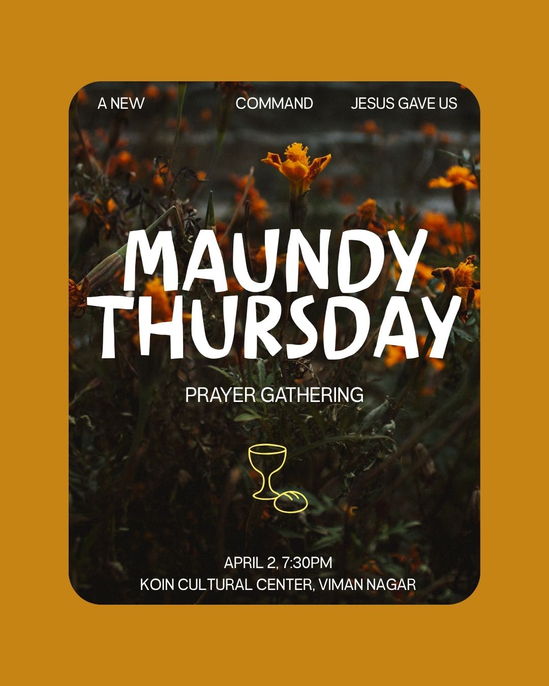 Maundy Thursday recalls the night Jesus shared His last meal with His disciples, and washed their feet. It was also the night Jesus entered the garden to pray before His arrest. Our prayer gathering is an opportunity to reflect on the depth of Jesus' obedience and love. And to allow prayer and reflection to prepare our hearts for Good Friday. 7:30pm on 2nd April Koin Cultural Center, Viman Nagar